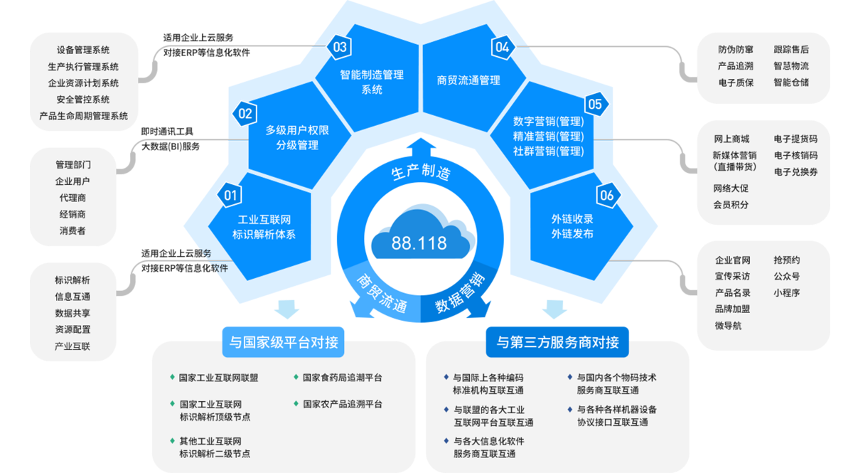 國家級查驗平臺 權威可靠 與國家工業互聯網標識解析體系對接,生成的產品標識可在【國家工業互聯網標識解析平臺】上查驗并解析。